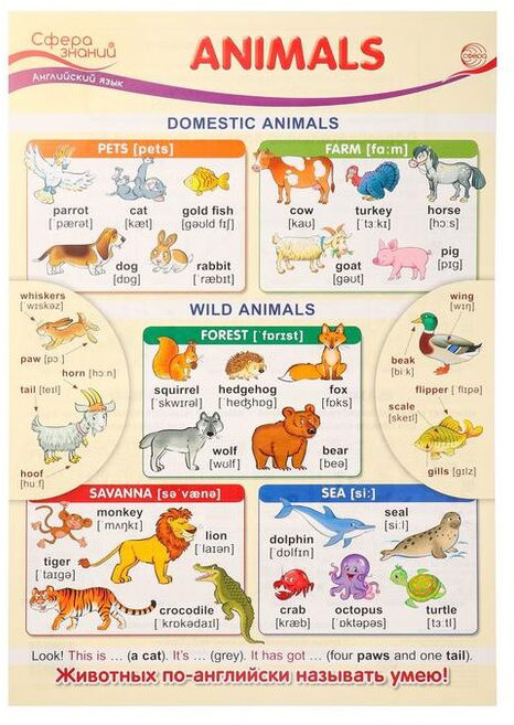 💳 Оплатить за товар можно при получении 🇰🇿 Есть бесплатная доставка по Казахстану от 1 дня 🎁 Копите бонусы с каждой покупки Серия: Сфера знаний Плакат рекомендован для занятий по английскому языку с учащимися 1-х классов общеобразовательных организаций. Соответствует ФГОС начального общего образования по учебному предмету «Английский язык». Плакат поможет быстро и наглядно изучить названия животных, которые поделены на две группы: домашние и дикие. Домашние животные представлены питомцами и теми, кто живёт на ферме, дикие — обитателями леса, саванны, моря. Кроме того, благодаря данному плакату можно узнать, как называются по-английски различные части тела зверей, птиц, рыб, что расширит словарный запас ребёнка по этой лексической теме. Внизу плаката даётся активная речевая модель употребления слов, что позволит научиться составлять предложения, а из предложений — небольшой рассказ по заданной теме. Плакат яркий, привлекающий к себе внимание ребёнка. Имеет удобный формат А3, его легко разместить в классе или дома для изучения предложенного материала. |