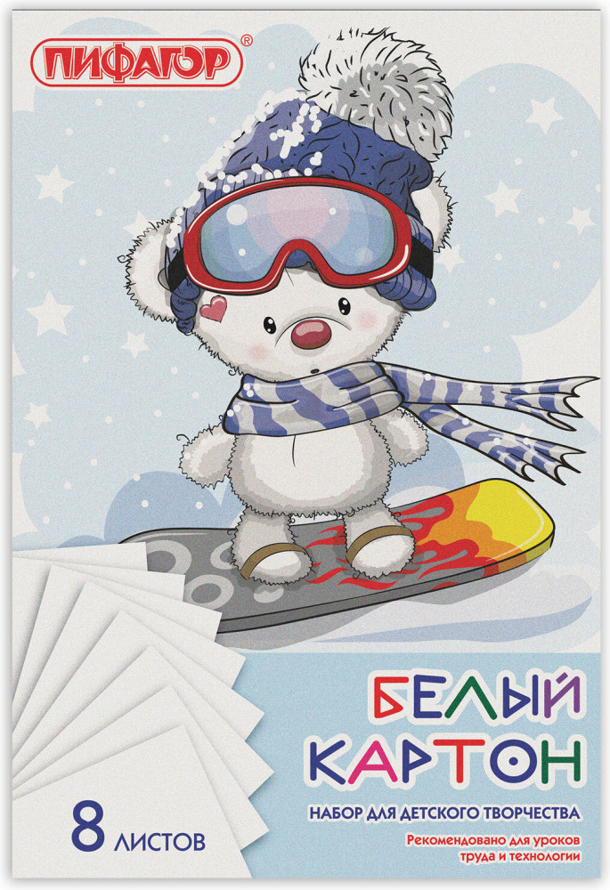 Пифагор Набор картона белого «Мишка на сноуборде»-20% +5