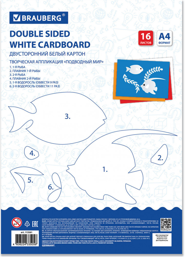 Brauberg Набор картона белого-26% +22 аппликаций качество белый цвет плотность бумаги удовлетворенность