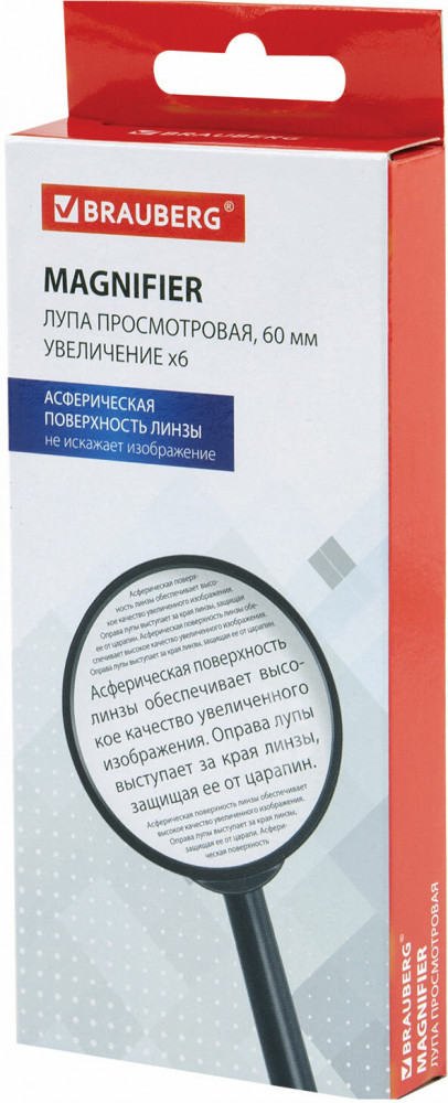 Brauberg Лупа просмотровая 6-ти кратное увеличениеВ данный момент этот товар отсутствует в продаже. Возможно, у нас найдется аналогичный или похожий товар здесь. Серия: Hand glass Просмотровая лупа Brauberg облегчает чтение, просмотр карт, мелких рисунков, шкал, схем. Корпус выполнен из пластика, а линза — из стекла. Асферическая поверхность линзы обеспечивает высокое качество изображения при увеличении мелких объектов и изображений. Диаметр линзы — 60 мм, производит шестикратное увеличение. Оправа лупы выступает за края линзы, защищая её от царапин. Снабжена удобной пластиковой ручкой. |
