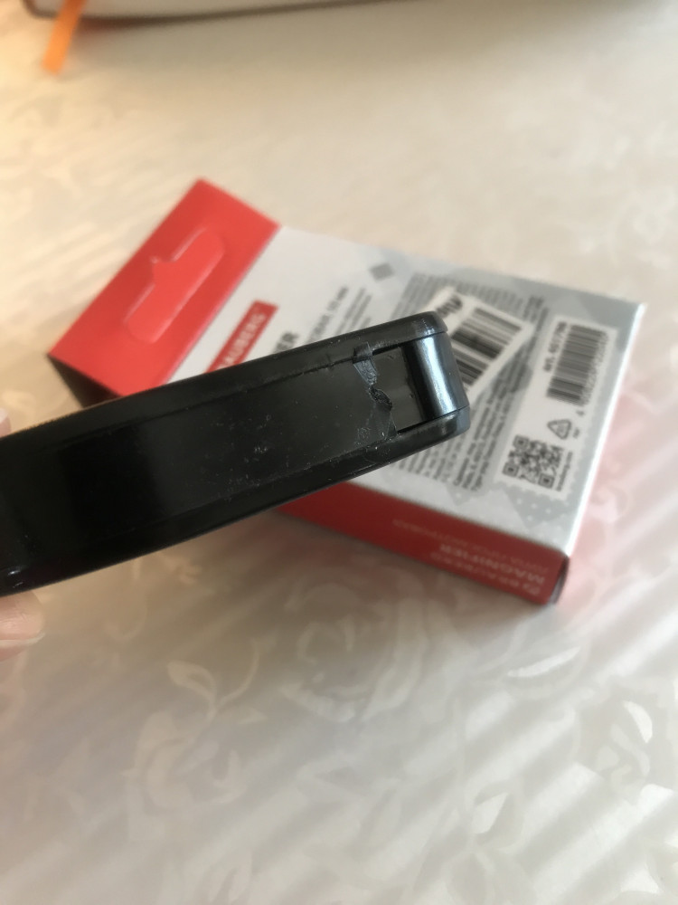 Туго открывается и имеет то ли трещену, то ли падала, хотя в упаковке не было осколков пластика. Размер в ладошку