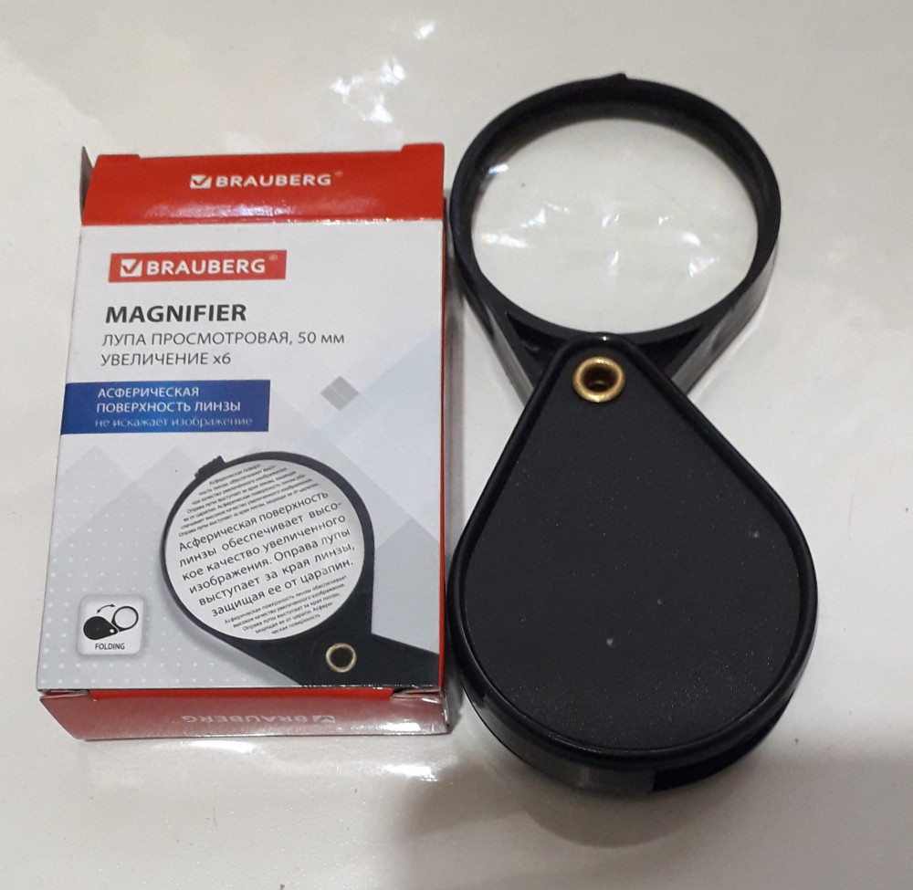 Лупа, не знаю какой краткости увеличения, но помогает прочитать мелкий шрифт на этикетках, который содержит самую важную информацию о товаре.