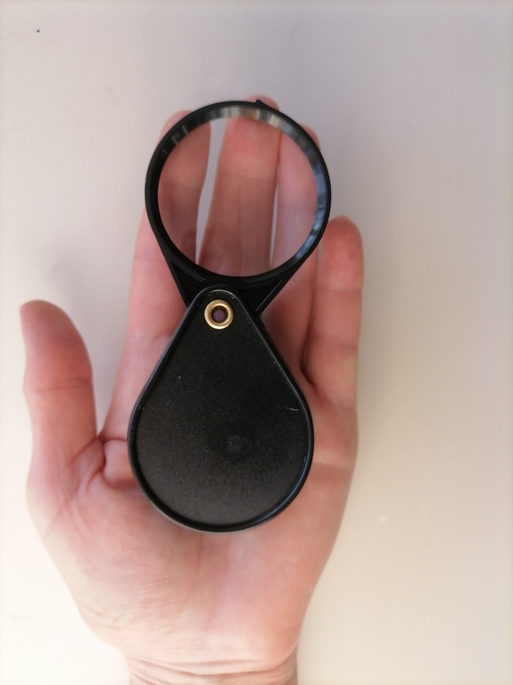 лупу удобно держать, размер позволяет носить с собой. Лупа выдвижная, что предохраняет стекло от повреждений.