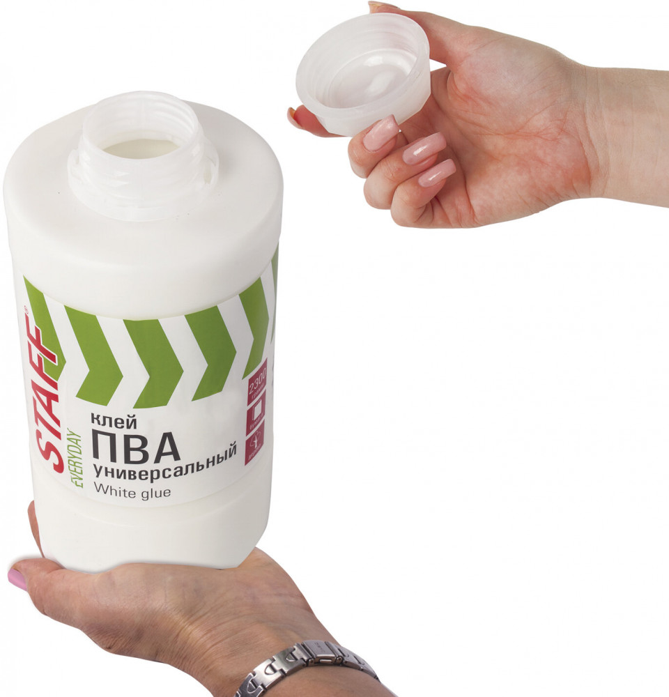 Густой, большой обьем. Купила для пиньяты, разбавила с водой 1:1 и он оказался намного прочнее чем обычный канцелярский пва. Довольна результатом