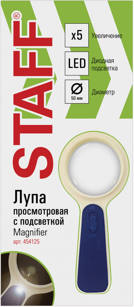 Staff Лупа просмотровая с подсветкойхорошее увеличение подсветка удобная портативная В данный момент этот товар отсутствует в продаже. Возможно, у нас найдется аналогичный или похожий товар здесь. Серия: Manager Просмотровая лупа Staff облегчает чтение, просмотр карт, мелких рисунков, шкал, схем. Корпус выполнен из пластика, а линза - из стекла. Асферическая поверхность линзы обеспечивает высокое качество изображения при увеличении мелких объектов и изображений. Диаметр линзы - 50 мм. Производит пятикратное увеличение. Оснащена светодиодной подсветкой. Оправа лупы выступает за края линзы, защищая её от царапин. Снабжена удобной пластиковой ручкой. Питание - 2 батарейки типа CR2016 (в комплекте). |