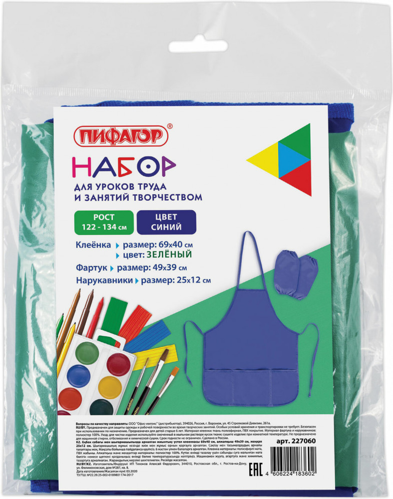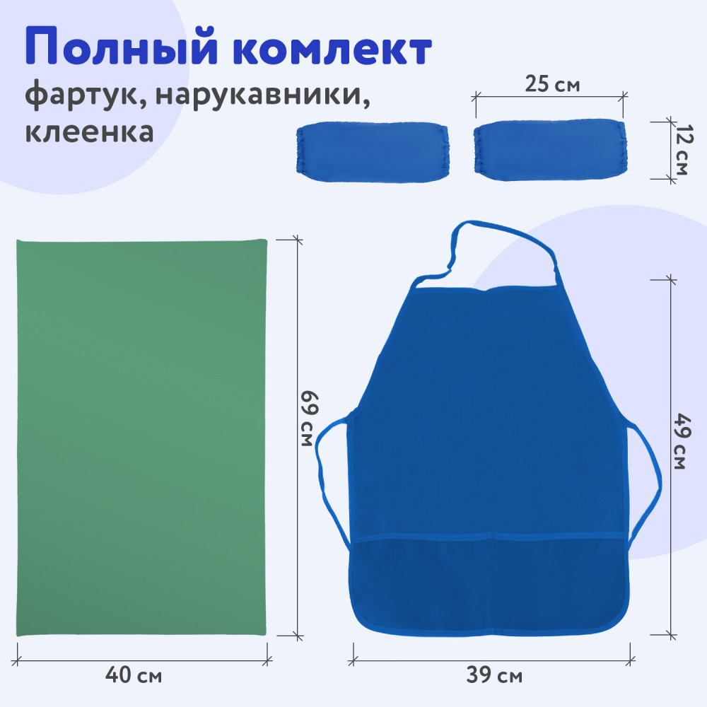 Пифагор Набор для уроков труда и занятий творчествомВ данный момент этот товар отсутствует в продаже. Возможно, у нас найдется аналогичный или похожий товар здесь. Набор для уроков труда — незаменимая вещь для защиты одежды и рабочей поверхности на уроках труда и занятиях творчеством. В набор входит фартук с нарукавниками и клеёнка. Предусмотрен для многоразового использования. Фартук с нарукавниками изготовлены из водоотталкивающего материала, клеёнка — из ПВХ. |