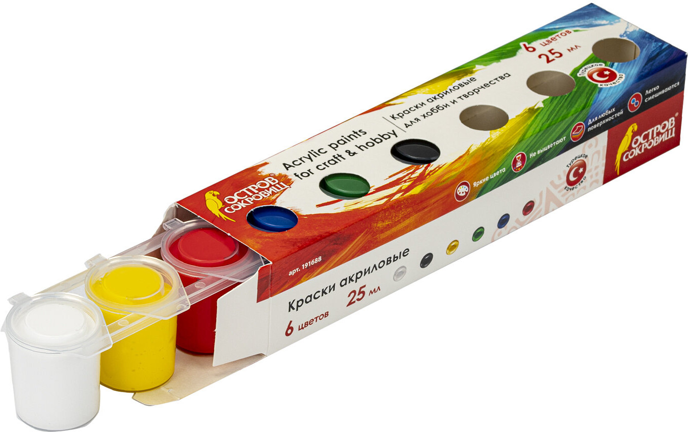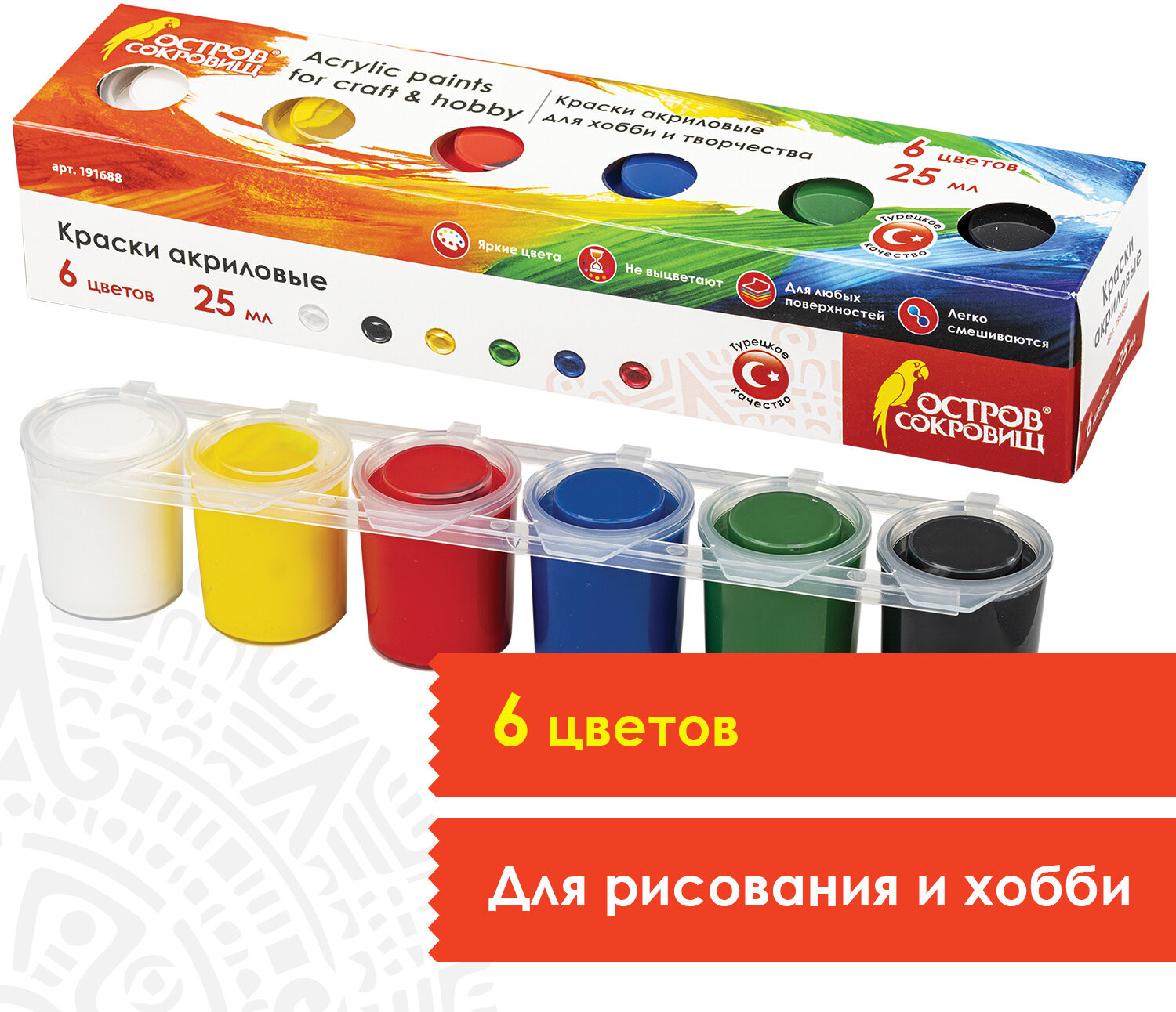 Остров сокровищ Набор красок акриловых-20% +34 яркие цвета хорошо смешиваются матовый финиш свежие