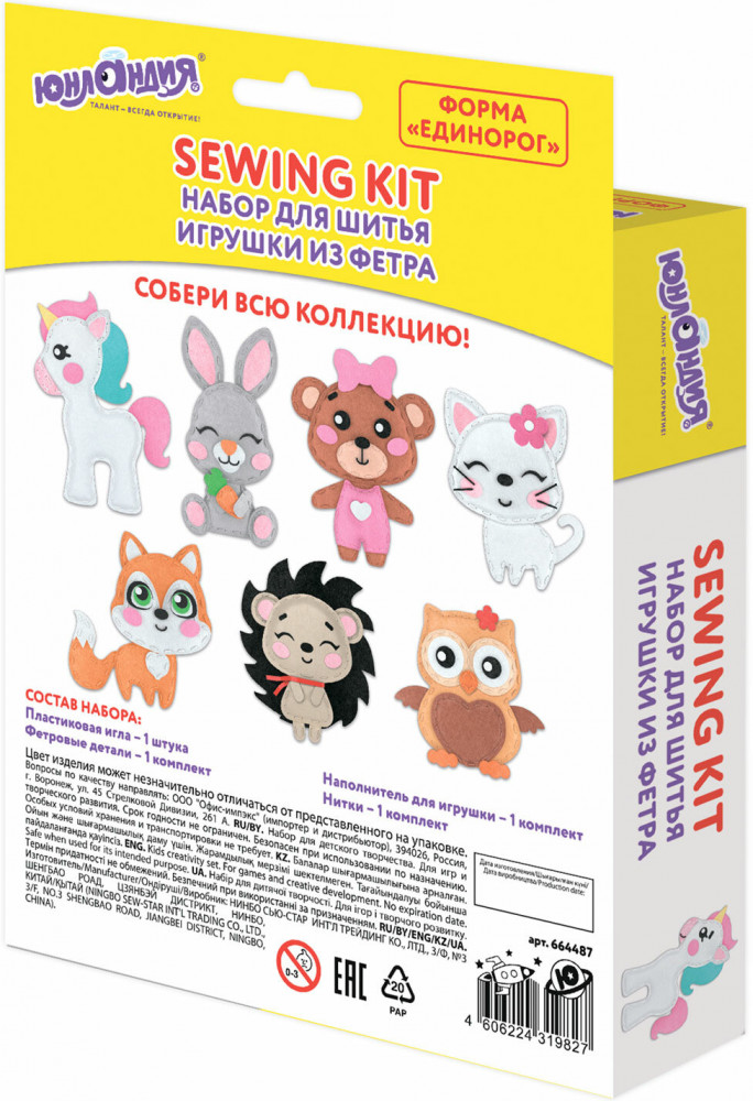 Юнландия Набор для изготовления игрушки из фетра «Единорог»-30% +37 качество навыки шитья интересный набор