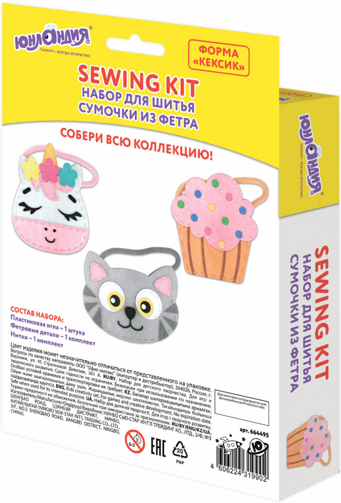 Юнландия Набор для шитья сумочки из фетра «Кексик»-10% +40