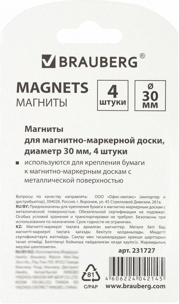 Brauberg Набор магнитов для досок-20% +16 крепкое держание удобные хорошие