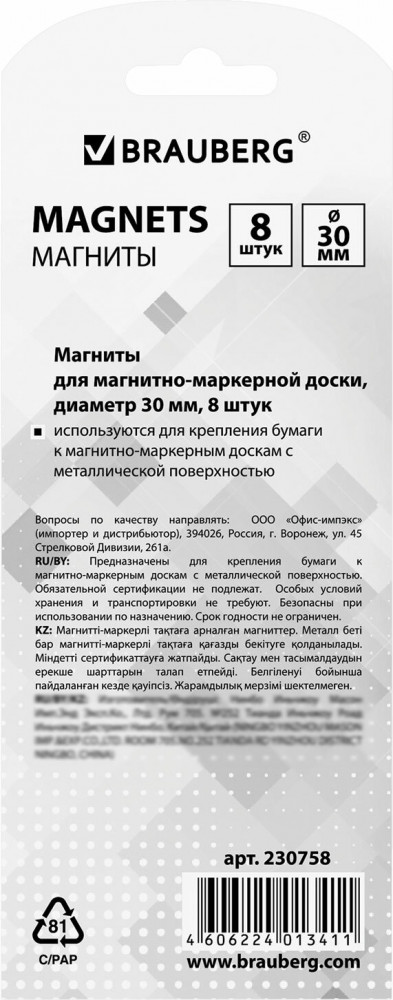 💳 Оплатить за товар можно при получении 🇰🇿 Есть бесплатная доставка по Казахстану 🎁 Копите бонусы с каждой покупки Магниты круглой формы с пластиковым покрытием для магнитно-маркерных досок. Диаметр магнита составляет 30 мм. Цвет — красный, черный, желтый, синий. Разноцветные магниты помогут надежно прикрепить листы бумаги к магнитно-маркерной поверхности досок, витрин и флипчартов. Надежно удерживаются на любой железной или стальной поверхности. |