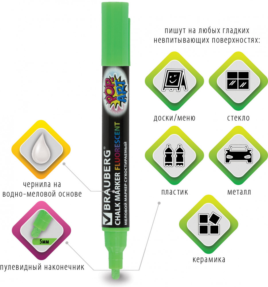Brauberg Маркер меловой, зелёный