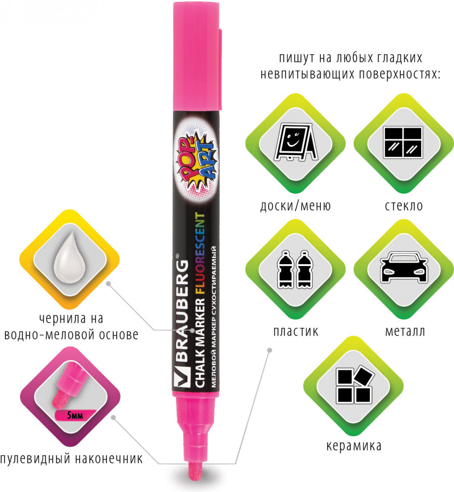 Brauberg Маркер меловой, розовый