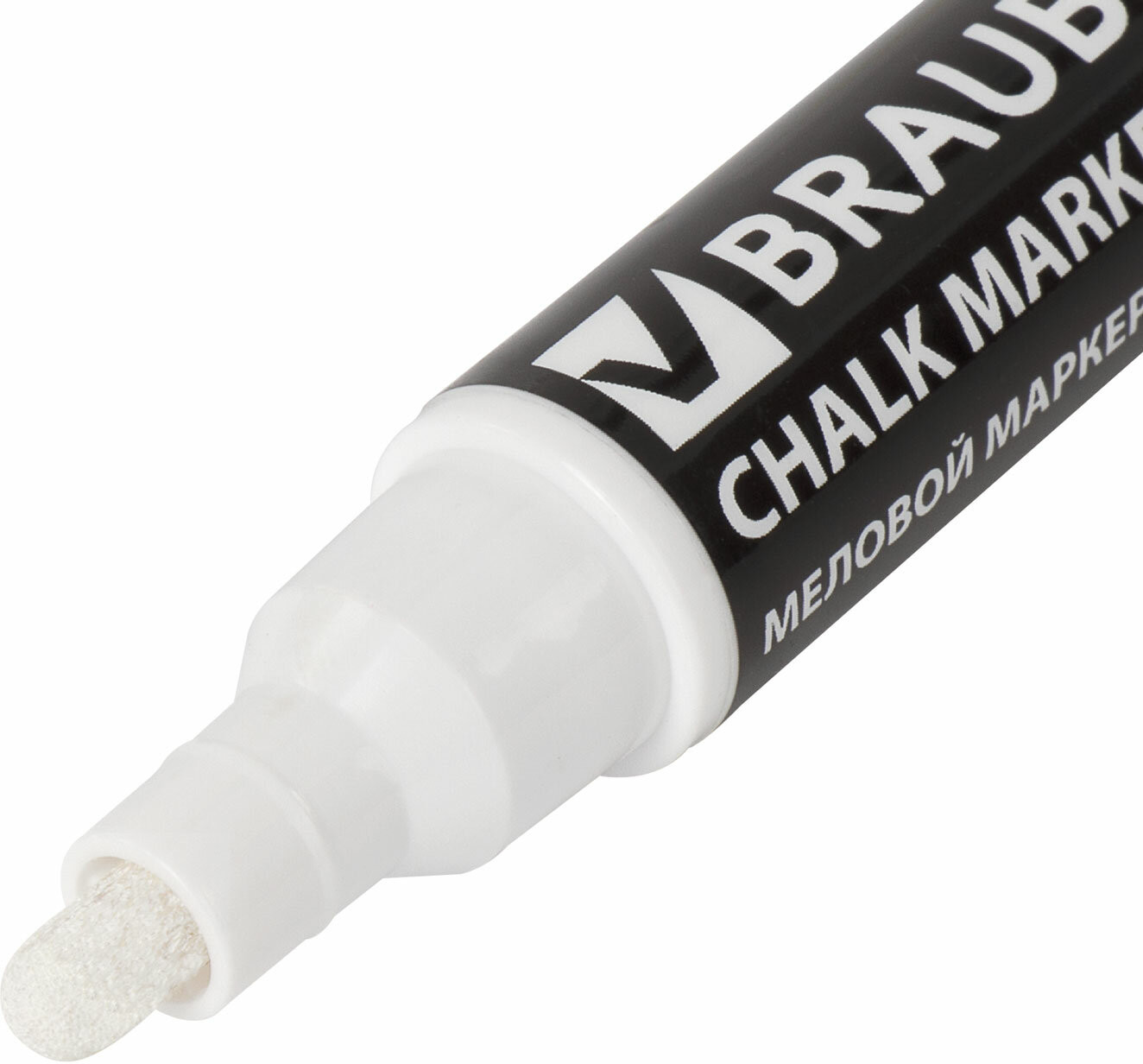 Предназначен для росписи, создания рисунков и надписей на зеркалах, стекле, меловой пленке и прочих гладких и прозрачных невпитывающих поверхностях. Рисунок получается плотный и яркий. Чернила на водно-меловой основе без резкого запаха. Толщина линии письма — от 1 мм до 5 мм, зависит от угла наклона мелового маркера. Круглый корпус выполнен из пластика.