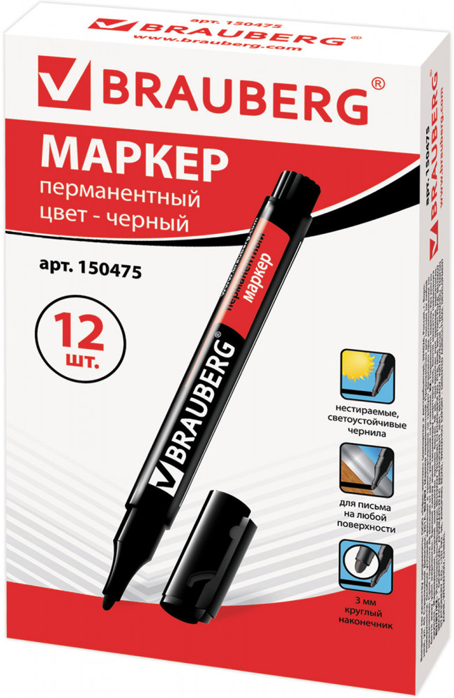Brauberg Маркер перманентный, чёрный-20% +15