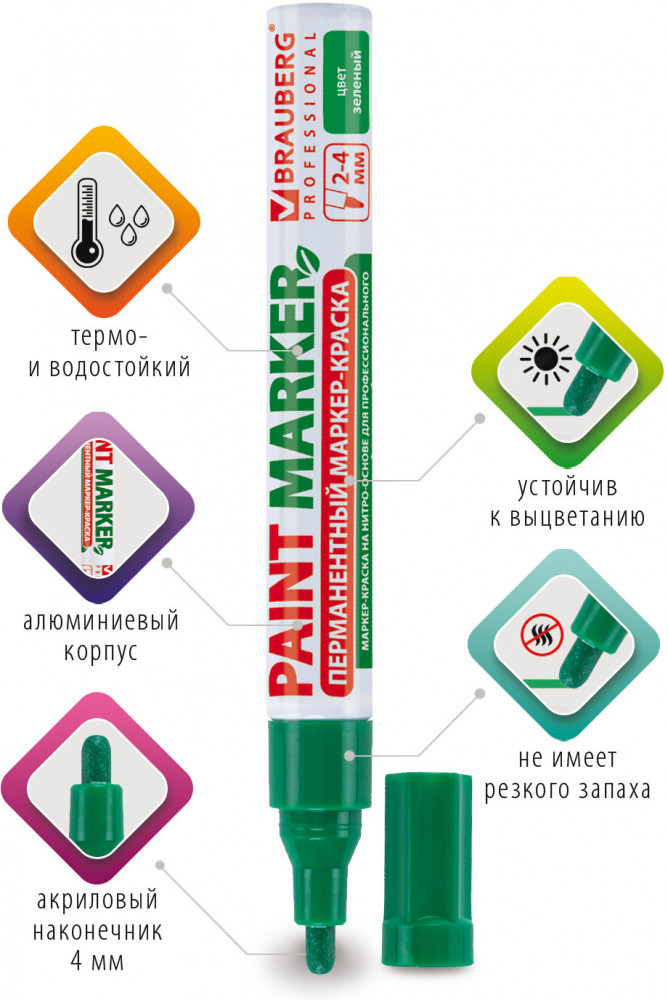 Brauberg Маркер-краска лаковый, зелёный