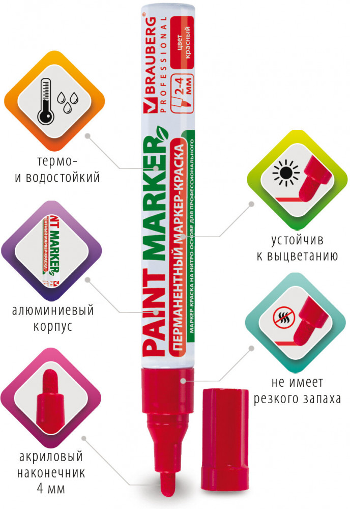 Brauberg Маркер-краска лаковый, красный
