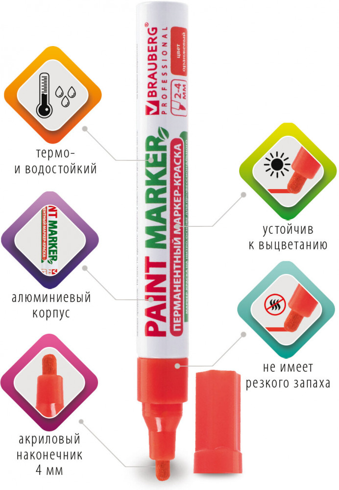 Brauberg Маркер-краска лаковый, оранжевый