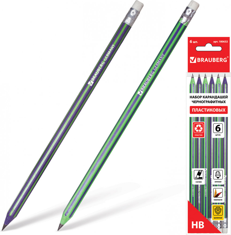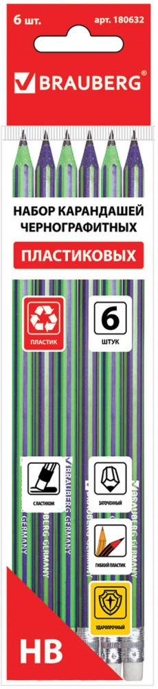 Brauberg Набор карандашей чернографитных с ластиком «Aviator»-20% +16 хорошее качество для школы для рисования комплект для детей