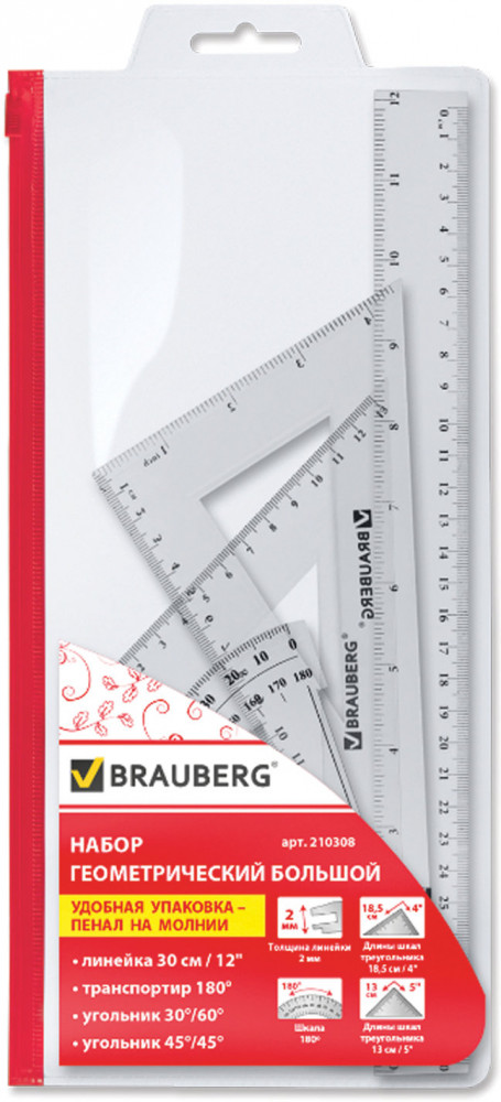 Brauberg Набор чертежныйВ данный момент этот товар отсутствует в продаже. Возможно, у нас найдется аналогичный или похожий товар здесь. Набор чертежный «Brauberg» предназначен для выполнения чертежных и измерительных работ в школе и дома. |