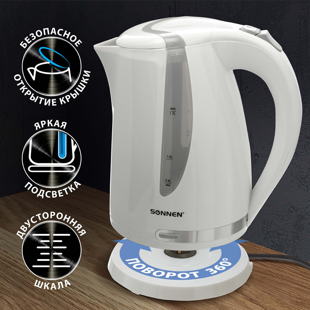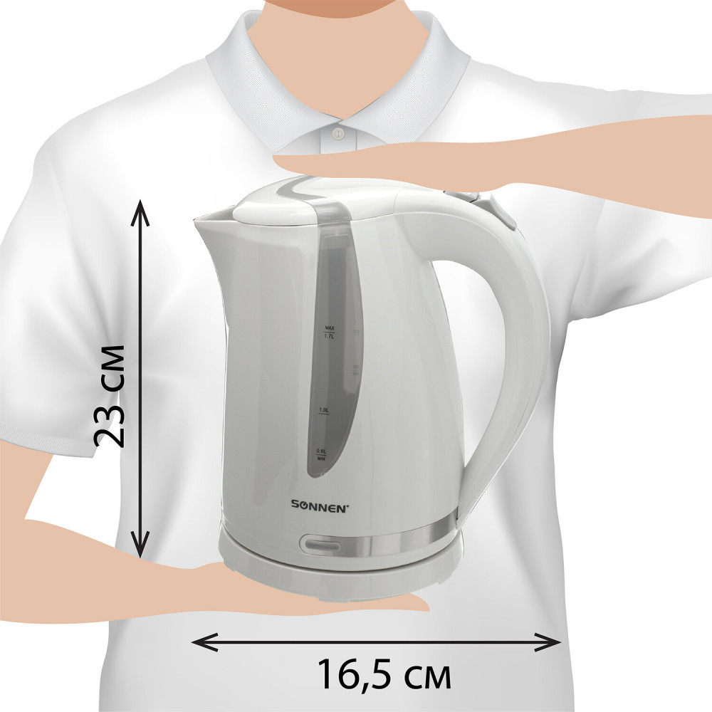 💳 Оплатить за товар можно при получении 🇰🇿 Есть бесплатная доставка по Казахстану от 1 дня 🎁 Копите бонусы с каждой покупки Благодаря своему дизайну, электрический чайник Sonnen KT-1743 отлично подойдет для дома и офиса. Мощность чайника составляет 2200 Вт, что позволит воде закипеть за считанные минуты. На ручке чайника находится кнопка открывания крышки, что делает удобнее его эксплуатацию. Закрытый нагревательный элемент поможет вскипятить нужное количество воды. Индикатор уровня воды позволит с легкостью определить количество воды в чайнике. Сменный нейлоновый фильтр предотвратит попадание накипи в напиток. Автоотключение при недостаточном количестве воды и защита от перегрева делают данную модель чайника безопасной в использовании. Подсветка проинформирует о том, что чайник включен и процесс нагрева воды запущен. Шнур чайника, при необходимости, можно спрятать в специальный отсек, расположенный в подставке. |