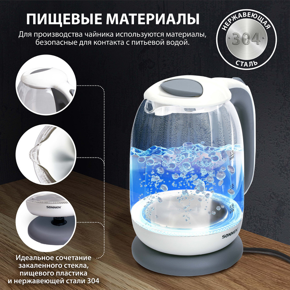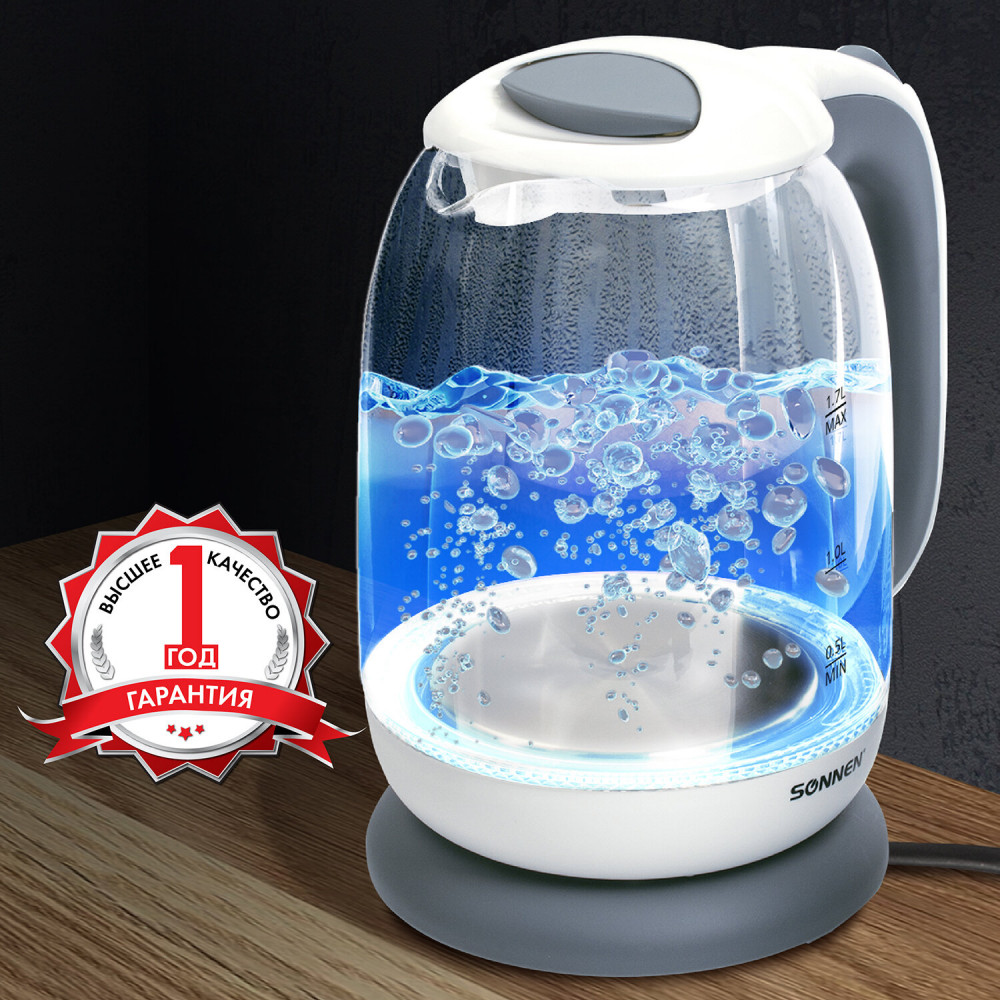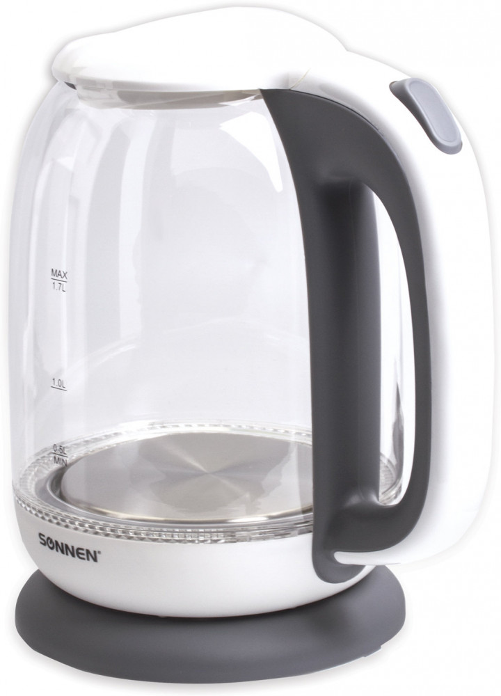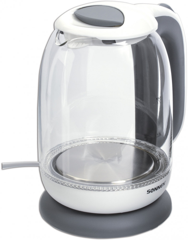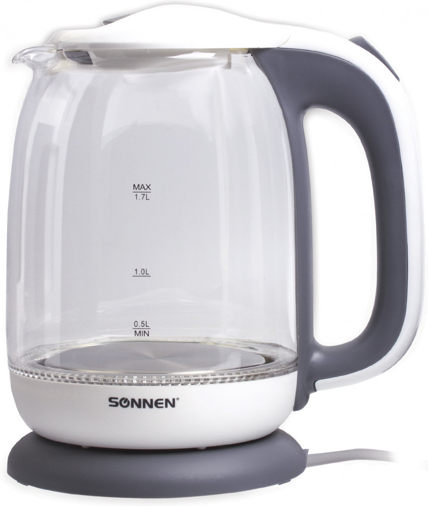 Чайник Sonnen KT-1792 привлекает внимание элегантным дизайном. Он станет отличным дополнением офисной или домашней кухни. Его мощность составляет 2200 Вт, что позволит вскипятить воду за считанные минуты. На крышке находится кнопка открывания, что делает эксплуатацию удобней. Корпус изготовлен из термостойкого стекла. Закрытый нагревательный элемент быстро вскипятит требуемое количество воды. Индикатор уровня воды позволит с легкостью определить количество воды в чайнике.