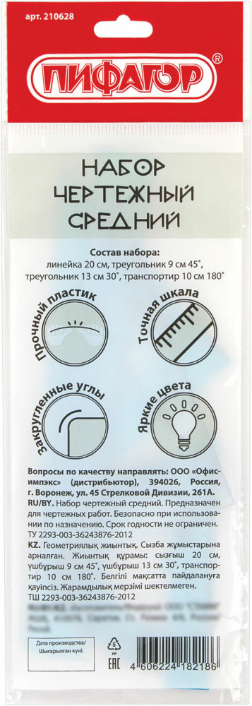 💳 Оплатить за товар можно при получении 🇰🇿 Есть бесплатная доставка по Казахстану от 1 дня 🎁 Копите бонусы с каждой покупки Набор чертежный геометрический «Пифагор» предназначен для выполнения чертежных работ. |