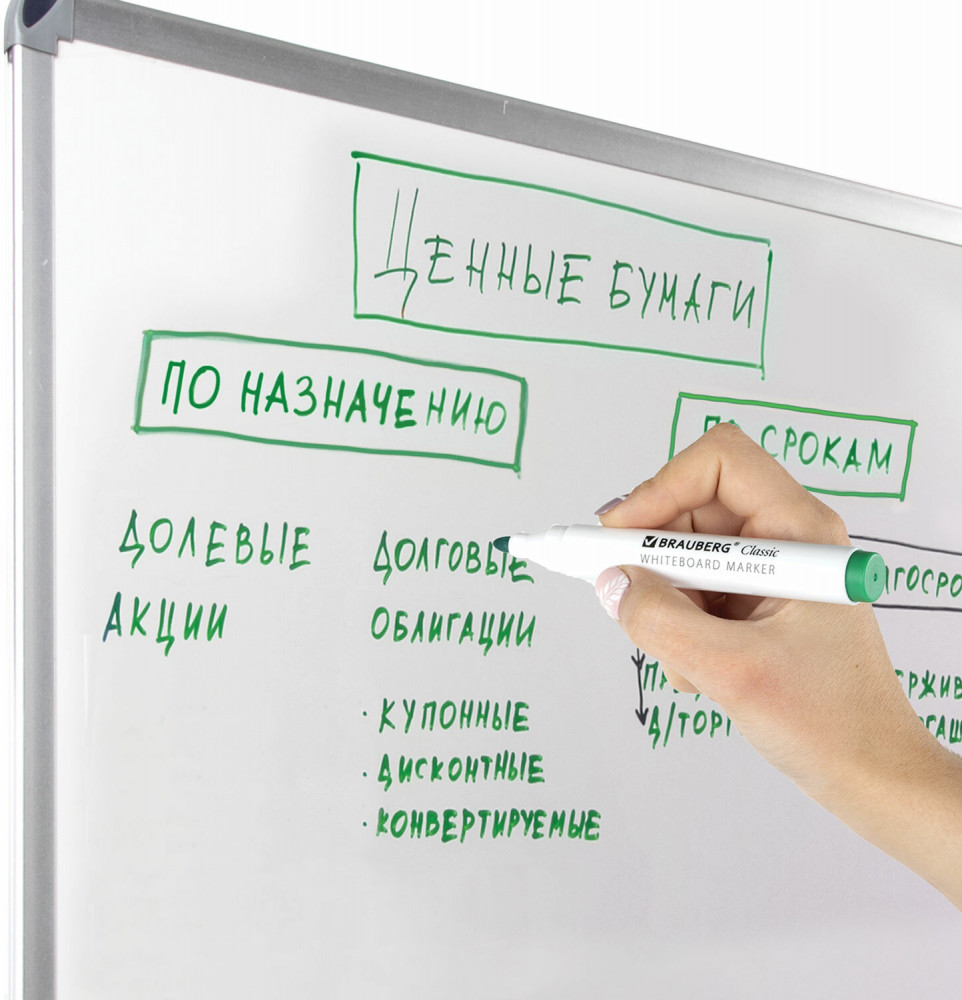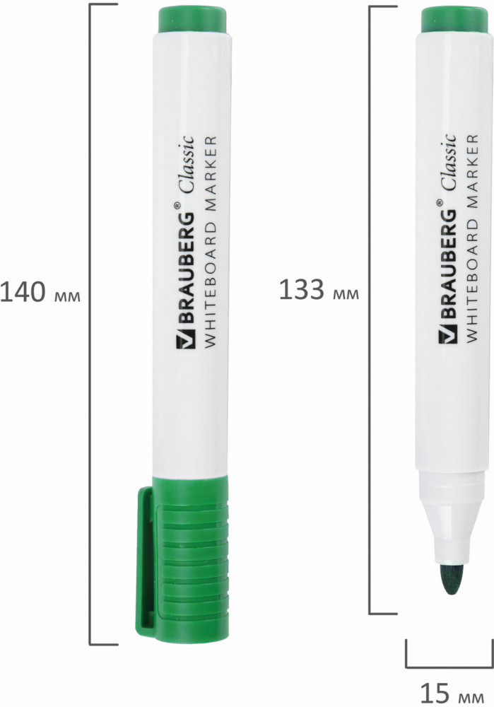 Высококачественный маркер «Classic» для белой доски. Предназначен для письма на досках с магнитно-маркерной поверхностью. Маркер для доски обладает круглым пластиковым корпусом диаметром 15 мм. Наконечник круглой формы обеспечивает толщину линии письма 3 мм, что позволяет писать крупным шрифтом, который будет хорошо виден. Основа чернил — спиртовая. Чернила быстро высыхают и не оставляют разводов, легко стираются сухой губкой. Изделие не перезаправляется. Цвет колпачка с клипом соответствует цвету чернил.