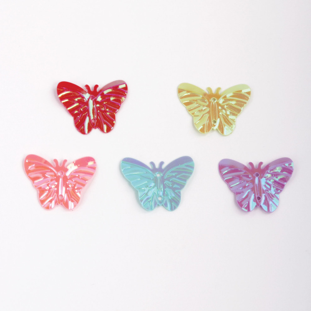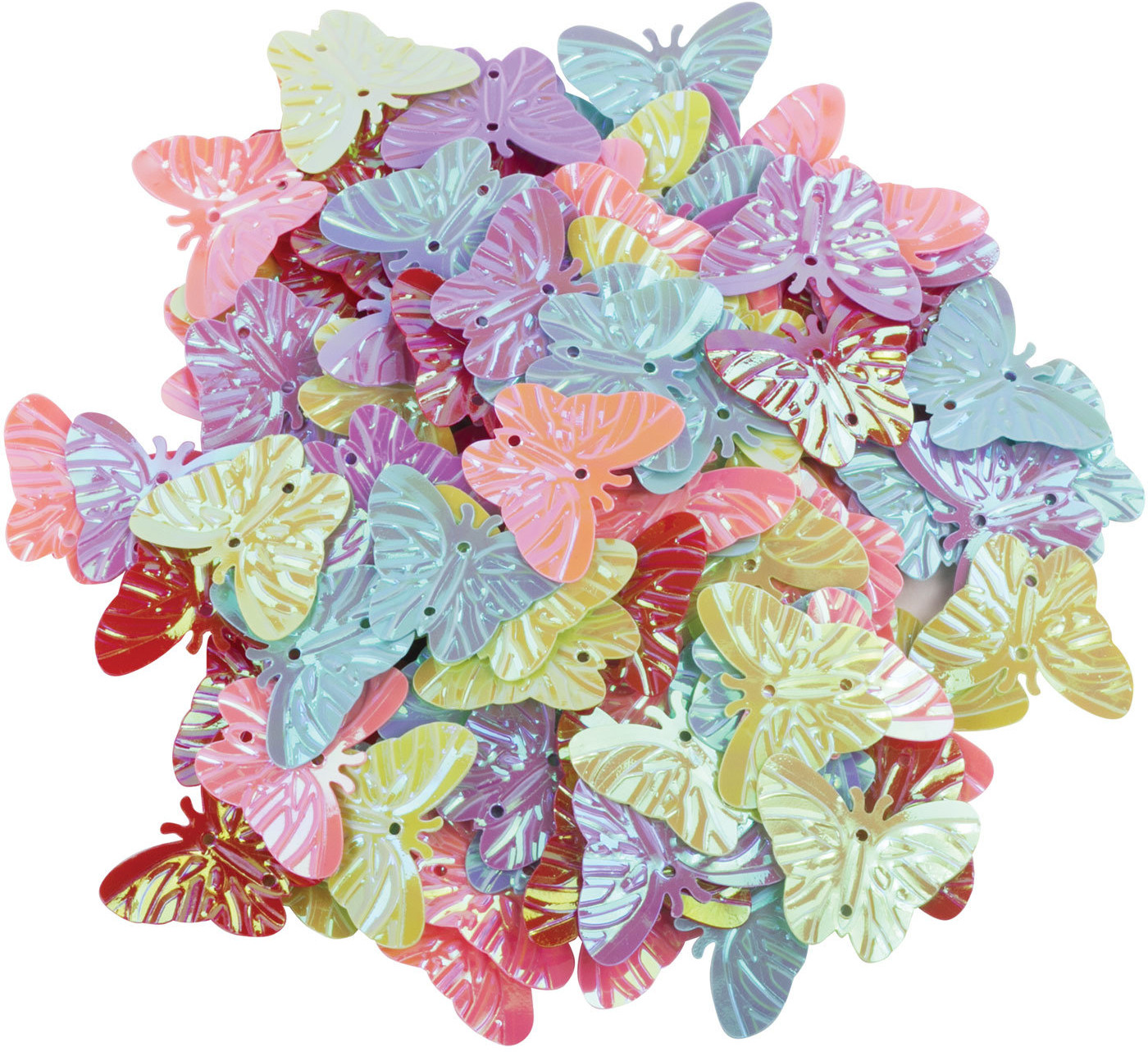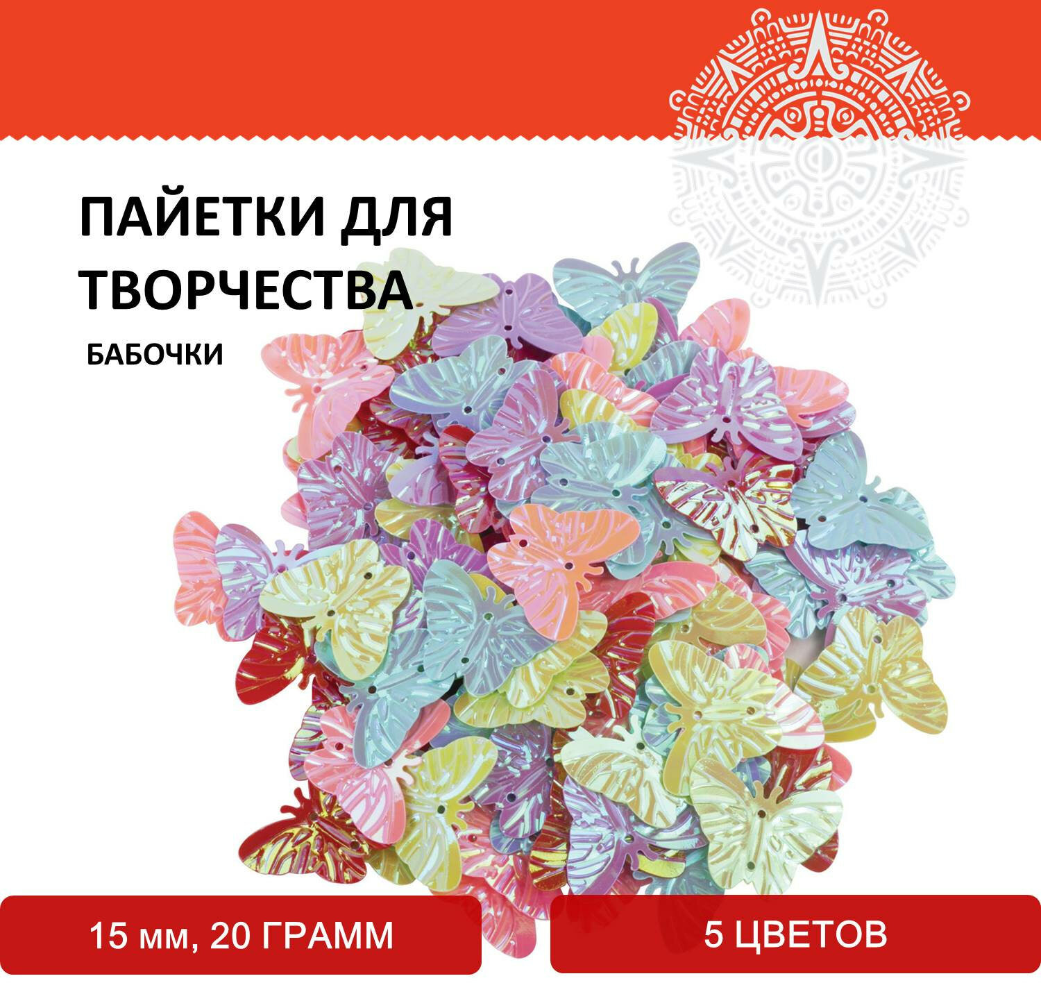Пайетки имеют широкий спектр использования. С их помощью можно украшать предметы одежды и интерьера, создавать простые аппликации и великолепные картины. Изготовлены из высококачественного пластика. В наборе представлены 5 оттенков. Пайетки имеют форму бабочек. Оснащены отверстиями для нити в центре.