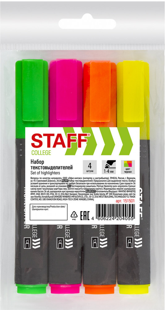 Текстовыделители Staff «College» облегчает работу с документацией и запоминание основных фрагментов. |