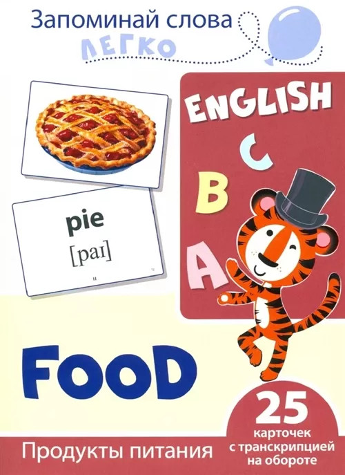 Запоминай слова легко. Продукты питания. 25 карточек с транскрипцией на обороте-20% +13