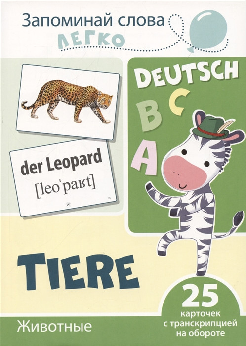 Запоминай слова легко. Животные. Немецкий язык. 25 карточек с транскрипцией на обороте+18