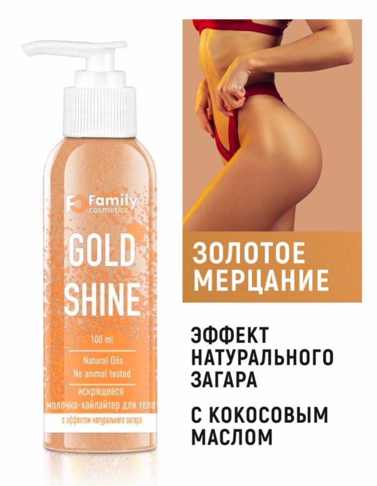 Family cosmetics Молочко-хайлайтер для тела с эффектом натурального загара «Gold shine»