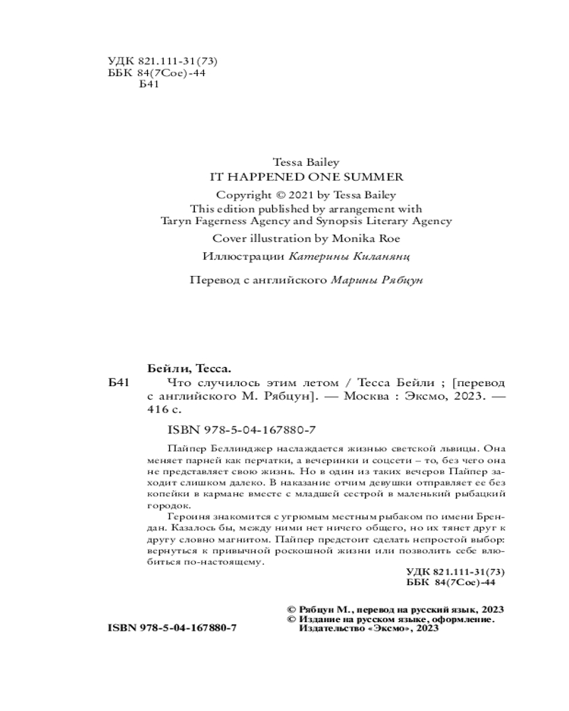 Обложка,переплет и листы,все очень качественное На счет сюжета ничего не скажу,для любителей легких летних романов самое то