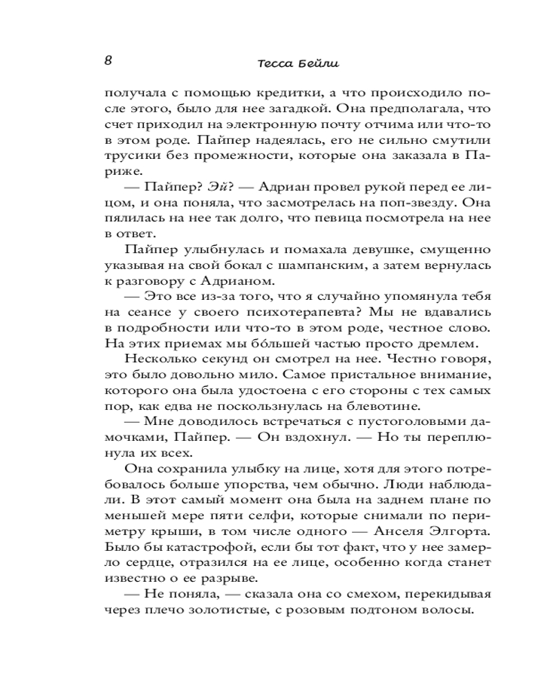 💳 Оплатить за товар можно при получении 🇰🇿 Есть бесплатная доставка по Казахстану от 1 дня 🎁 Копите бонусы с каждой покупки Серия: Cupcake. Бестселлеры БукТока. Тесса Бейли Пайпер Беллинджер наслаждается жизнью светской львицы. Она меняет парней, как перчатки, а вечеринки и соцсети — то, без чего она не представляет свою жизнь. Но в один из таких вечеров Пайпер заходит слишком далеко. В наказание отчим девушки отправляет ее без копейки в кармане вместе с младшей сестрой в маленький рыбацкий городок. Героиня знакомится с угрюмым местным рыбаком по имени Брендан. Казалось бы, между ними нет ничего общего, но их тянет друг к другу словно магнитом. Пайпер предстоит сделать непростой выбор: вернуться к привычной роскошной жизни или позволить себе влюбиться по-настоящему. |