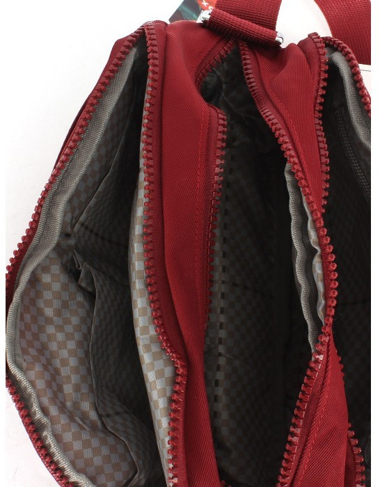при компактном размере, очень вместительная, много отделов, хорошие замки, обработанные швы.