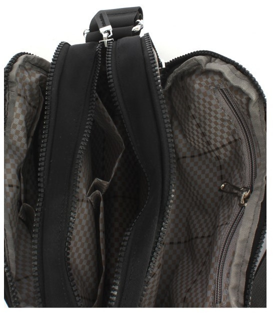 при компактном размере, очень вместительная, много отделов, хорошие замки, обработанные швы.