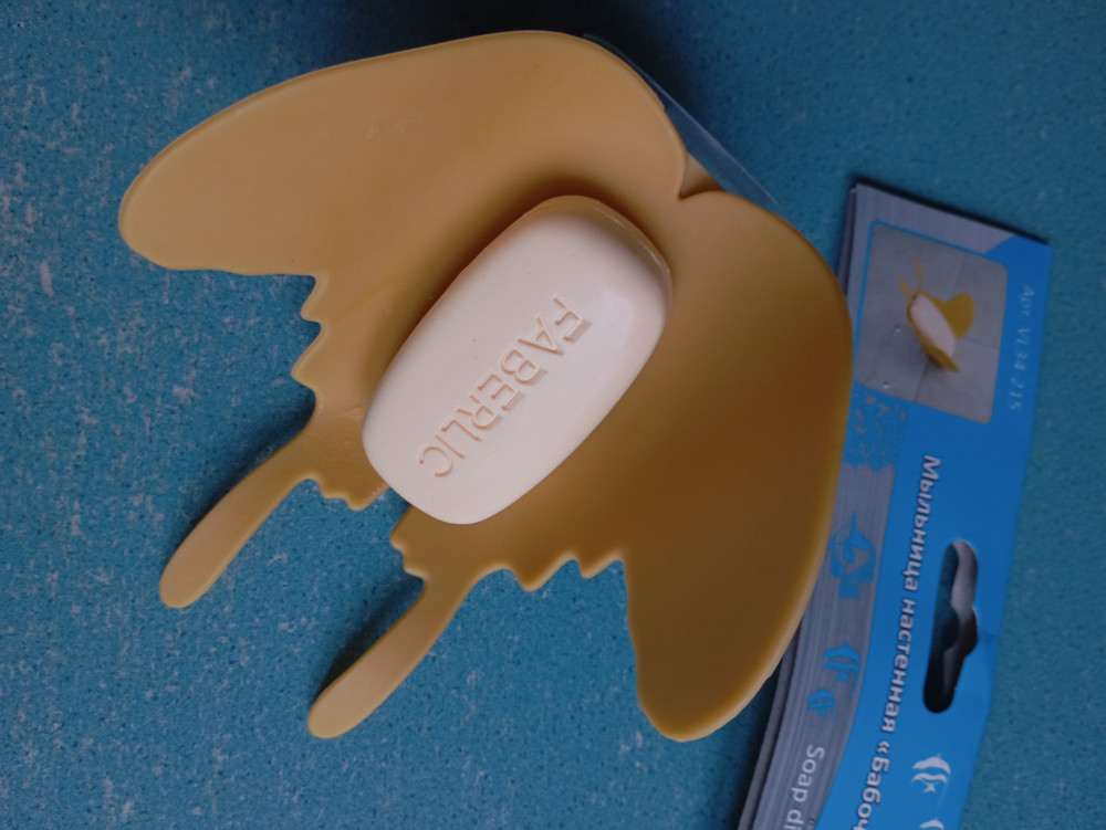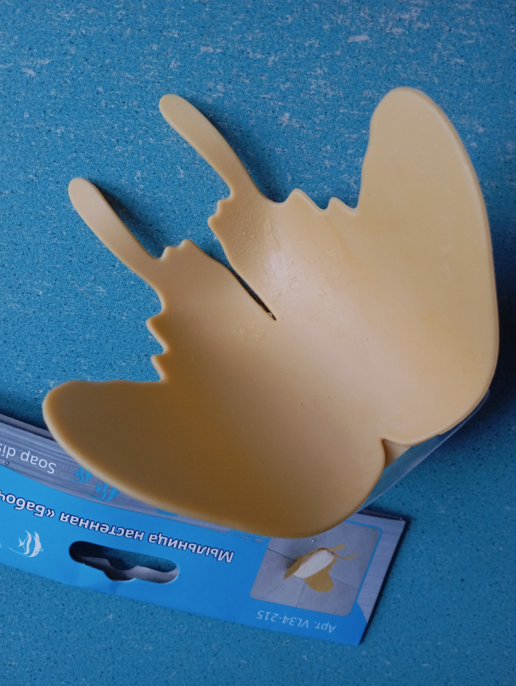 думала будет поярче.цвет какой-то совсем неяркий как грязно жёлтый.и пластик местами шершавый.для большого мыла мало места а для маленького мылка удобно