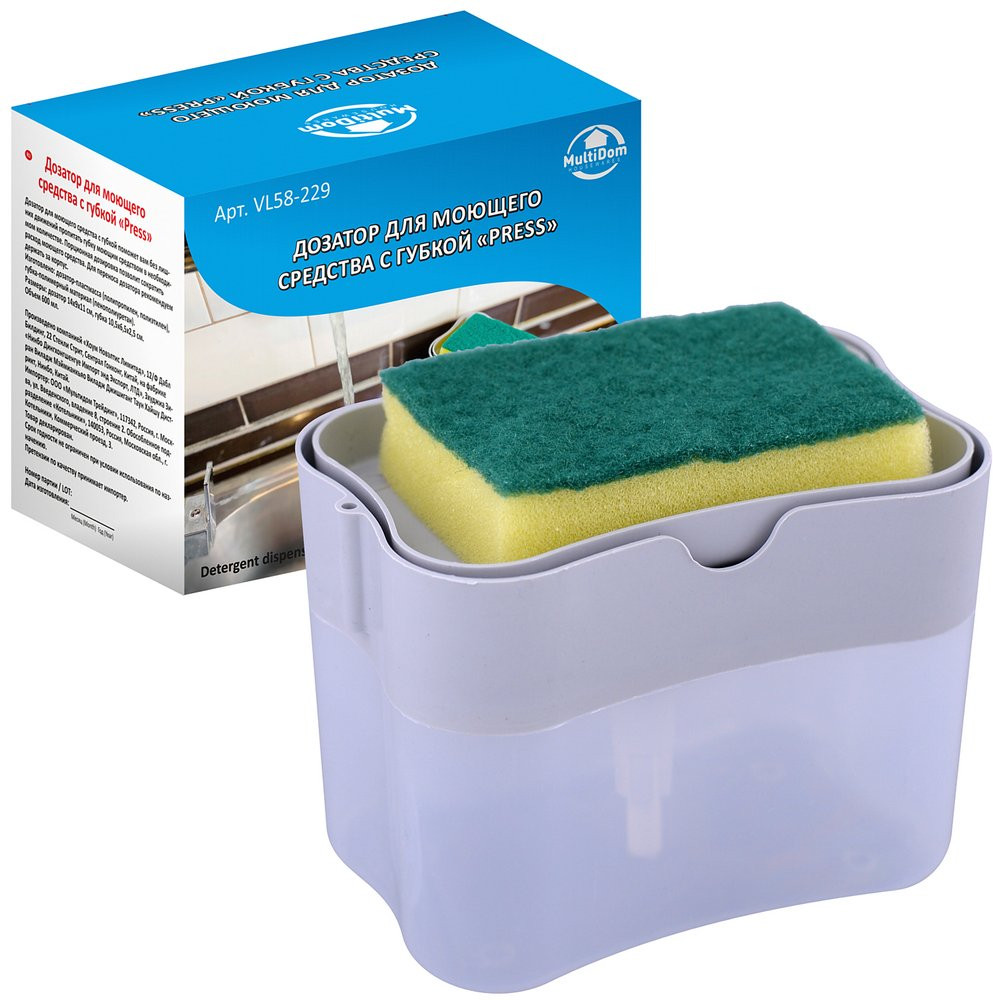 Мультидом Трейдинг Дозатор для моющего средства с губкой «Press»-20%