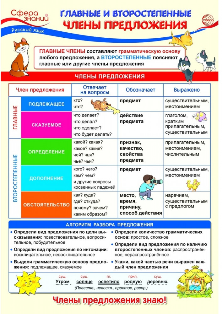 Плакат «Главные и второстепенные члены предложения»+5 наглядное пособие опора обучение