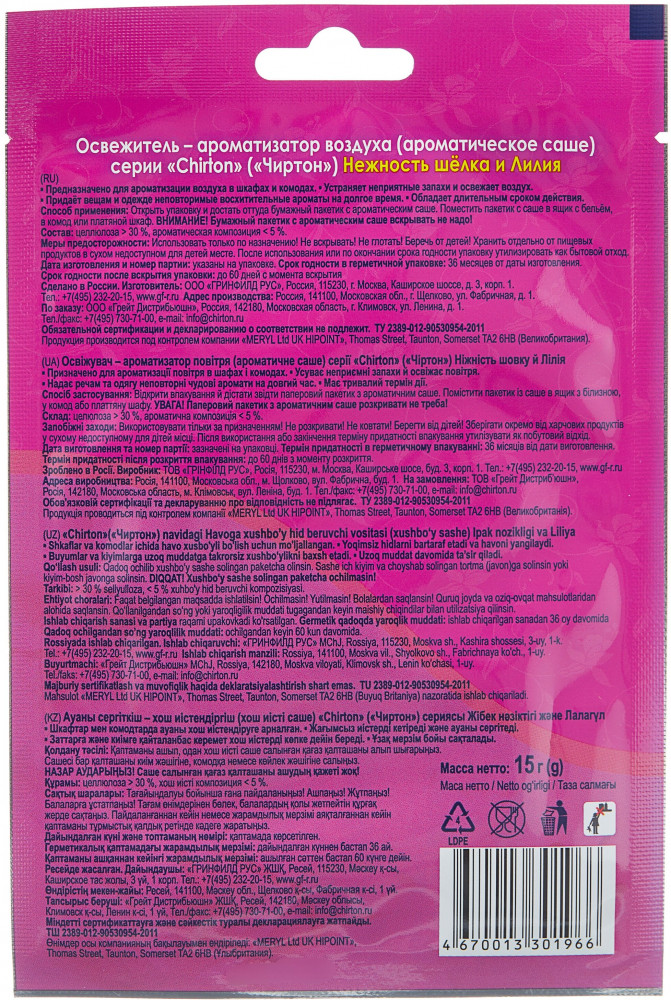 Chirton Саше ароматическое «Нежность шелка и лилия»