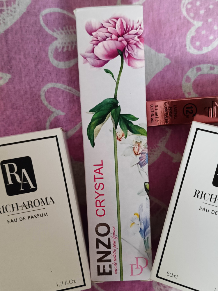 Лёгкий, приятный аромат.Симпатичный флакончик.Как по отзывам у всех держится по разному,у меня до вечера одежда пахнет ими.с кожи выветривается быстрее часа через три