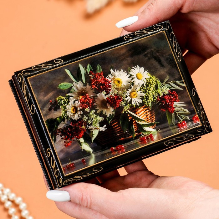 Шкатулка «Ромашки с ягодами в корзине»В данный момент этот товар отсутствует в продаже. Возможно, у нас найдется аналогичный или похожий товар здесь. Серия: Лаковая миниатюра Оригинальную шкатулку можно использовать для хранения ювелирных украшений или как коробочку для шитья и рукоделия. Сочетание оригинального дизайна и функциональности сделает такую шкатулку практичным и стильным подарком для любой хозяйки. Шкатулка изготовлена из дерева, покрыта краской. Заранее напечатанное изображение приклеено и покрыто лаком. Дополнительно мастер наносит узор. Станут отличным подарком себе и своим близким! |