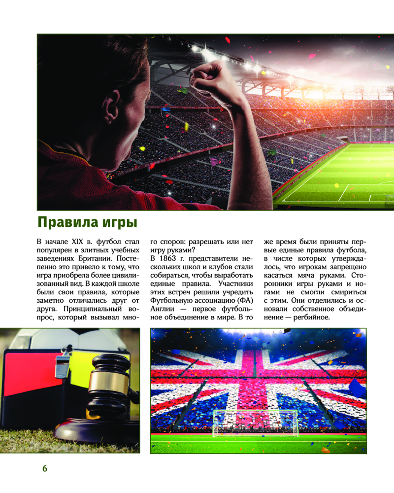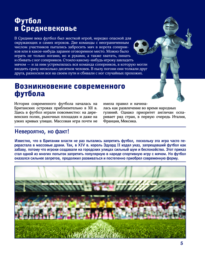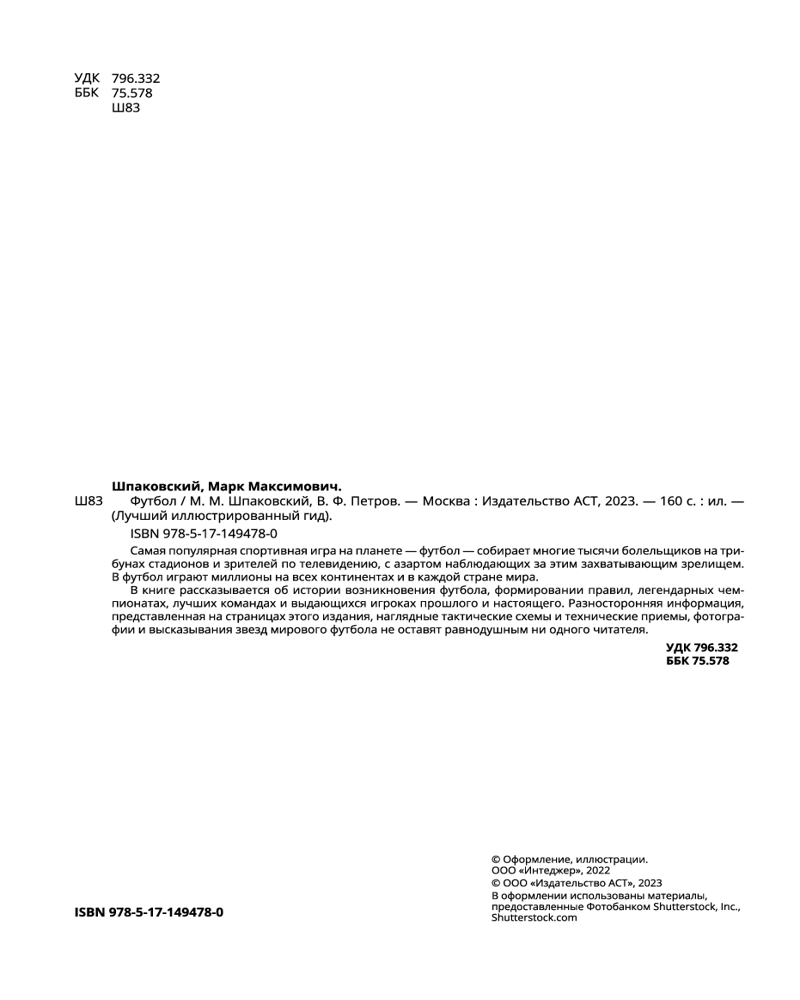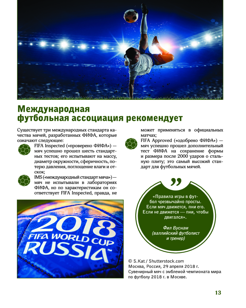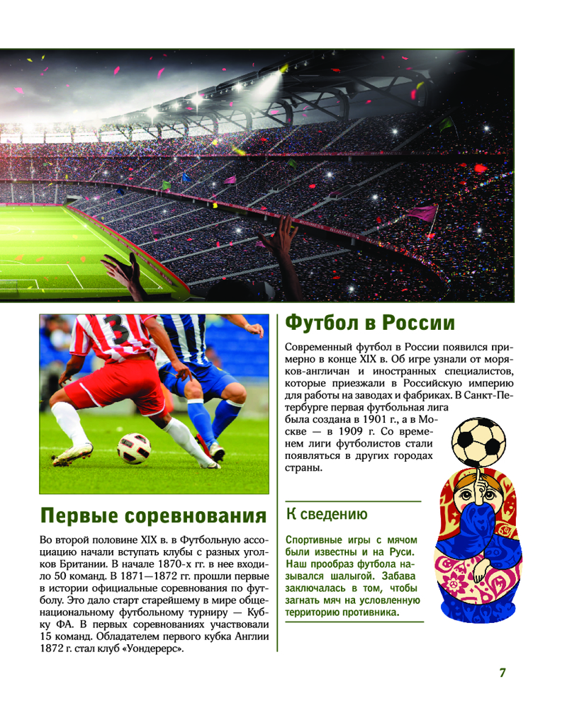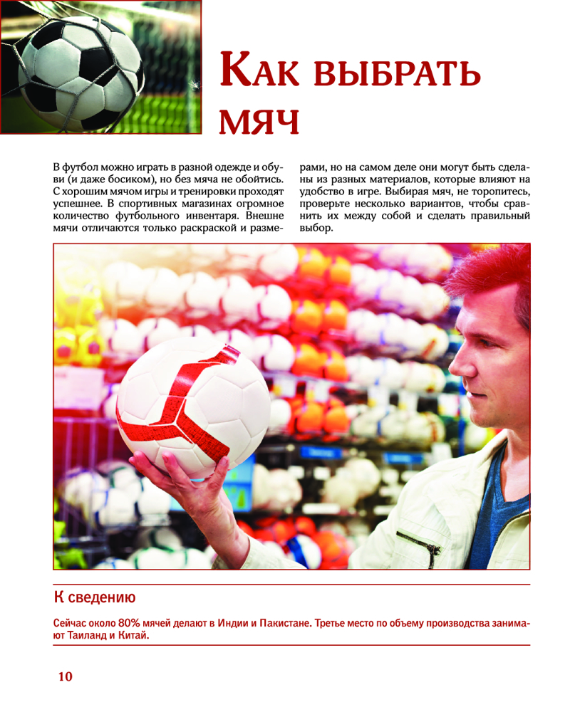 💳 Оплатить за товар можно при получении 🇰🇿 Есть бесплатная доставка по Казахстану от 1 дня 🎁 Копите бонусы с каждой покупки Серия: Лучший иллюстрированный гид Футбол — спорт номер один в мире. Миллионы болельщиков с трибун стадионов и у экранов телевизоров с азартом следят за отборочными турами континентальных и мировых чемпионатов, а потом за встречами команд в финале. Этот популярнейший вид спорта — целое искусство, он стал неотъемлемым элементом культуры, определяющим стиль жизни людей в разных уголках нашей планеты. |