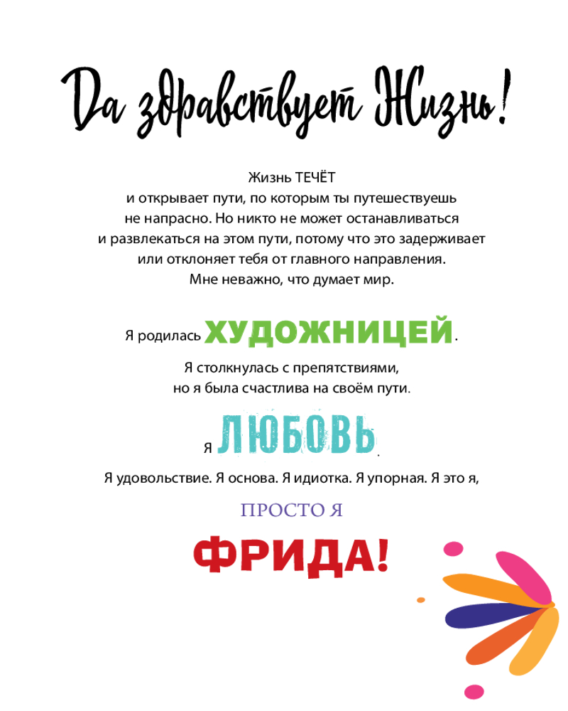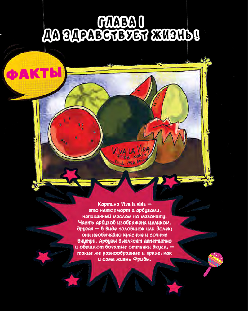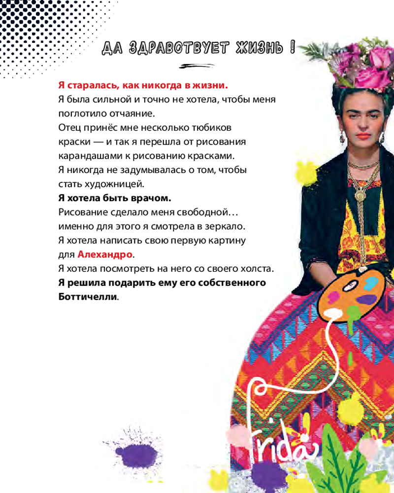 💳 Оплатить за товар можно при получении 🇰🇿 Есть бесплатная доставка по Казахстану от 1 дня 🎁 Копите бонусы с каждой покупки Серия: Суперфакты об искусстве Эта невероятная женщина была уверена, что родилась вместе с мексиканской революцией. Её железная воля помогала ей преодолевать недуги, её талант открыл миру яркие краски родной Мексики, а трепещущее сердце — сокровенные переживания любящей женщины. Книга написана в форме дневника Фриды Кало, акцент сделан на реальных фактах из биографии художницы. |