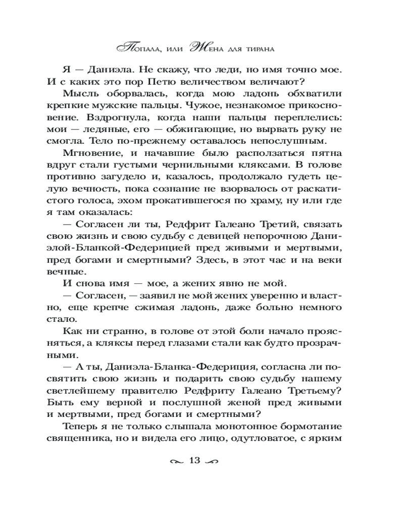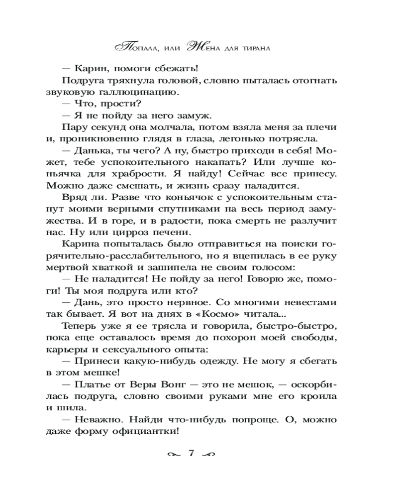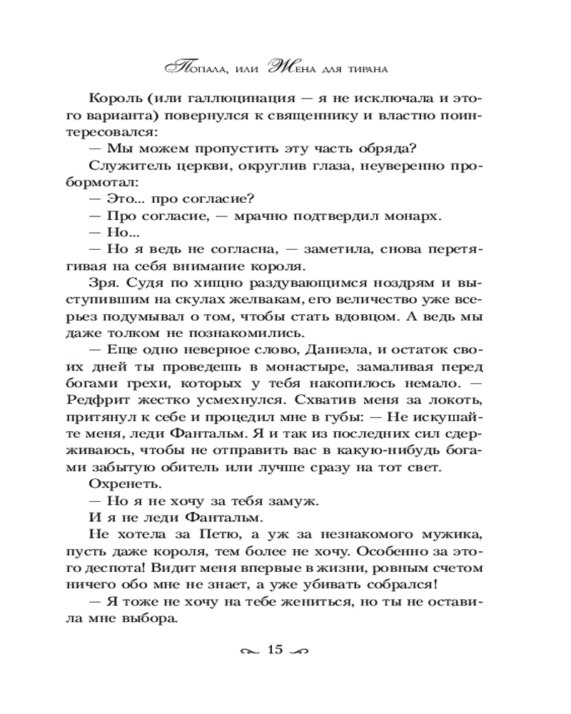 💳 Оплатить за товар можно при получении 🇰🇿 Есть бесплатная доставка по Казахстану от 1 дня 🎁 Копите бонусы с каждой покупки Серия: Осторожно, попаданка! Не стоит поддаваться панике в день свадьбы. Надеясь сбежать от навязанного родителями жениха, я последовала за загадочной незнакомкой в никуда. Ну то есть не в никуда, а в другой мир и другое тело, да еще и в жены одного заносчивого деспота. Редфрит Галеано терпеть не может ту, чье место я теперь занимаю. А я, как выясняется, не жалую тиранов. Единственное, что ему от меня нужно, — это наследник, в то время как я мечтаю об обратном билете на Землю. И пусть я попала, причем капитально, но это не значит, что сдамся! Если потребуется, отправлюсь и в таинственное Средиземье, лишь бы стать прежней Даниэлой. |