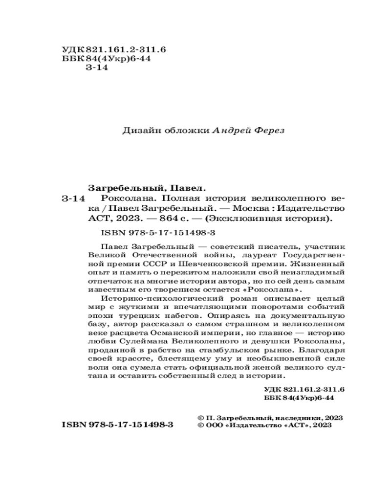 💳 Оплатить за товар можно при получении 🇰🇿 Есть бесплатная доставка по Казахстану от 1 дня 🎁 Копите бонусы с каждой покупки Серия: Эксклюзивная история Историко-психологический роман описывает целый мир с жуткими и впечатляющими поворотами событий эпохи турецких набегов. Опираясь на документальную базу, автор рассказал о самом страшном и великолепном веке расцвета Османской империи, но главное историю любви Сулеймана Великолепного и девушки Роксоланы, проданной в рабство на стамбульском рынке. Благодаря своей красоте, блестящему уму и необыкновенной силе воли, она сумела стать официальной женой великого султана и оставить собственный след в Истории. |
