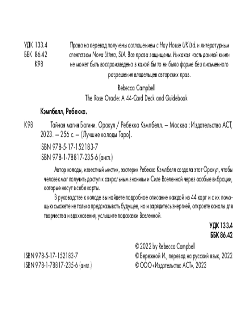 💳 Оплатить за товар можно при получении 🇰🇿 Есть бесплатная доставка по Казахстану от 1 дня 🎁 Копите бонусы с каждой покупки Серия: Лучшие колоды Таро (Коробка с картами + руководство) Удобное экономичное издание одной из самых популярных колод на Amazon — для всех ценительниц Таро. Колоды Ребекки Кэмпбелл отличаются особой женственной красотой, невероятной тонкостью понимания Души и простотой толкования. Каждая карта в колоде «Таро. Тайная магия Богини» пронизана сакральной магией. Оракул поможет вам соединиться с целительной энергией розы, настроиться на смену времен года в вашей жизни, услышать голос своей души и получить вдохновение для того, чтобы изменить совою жизнь. |