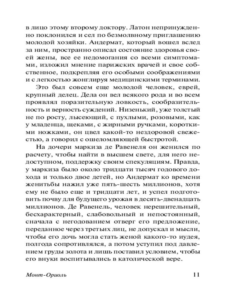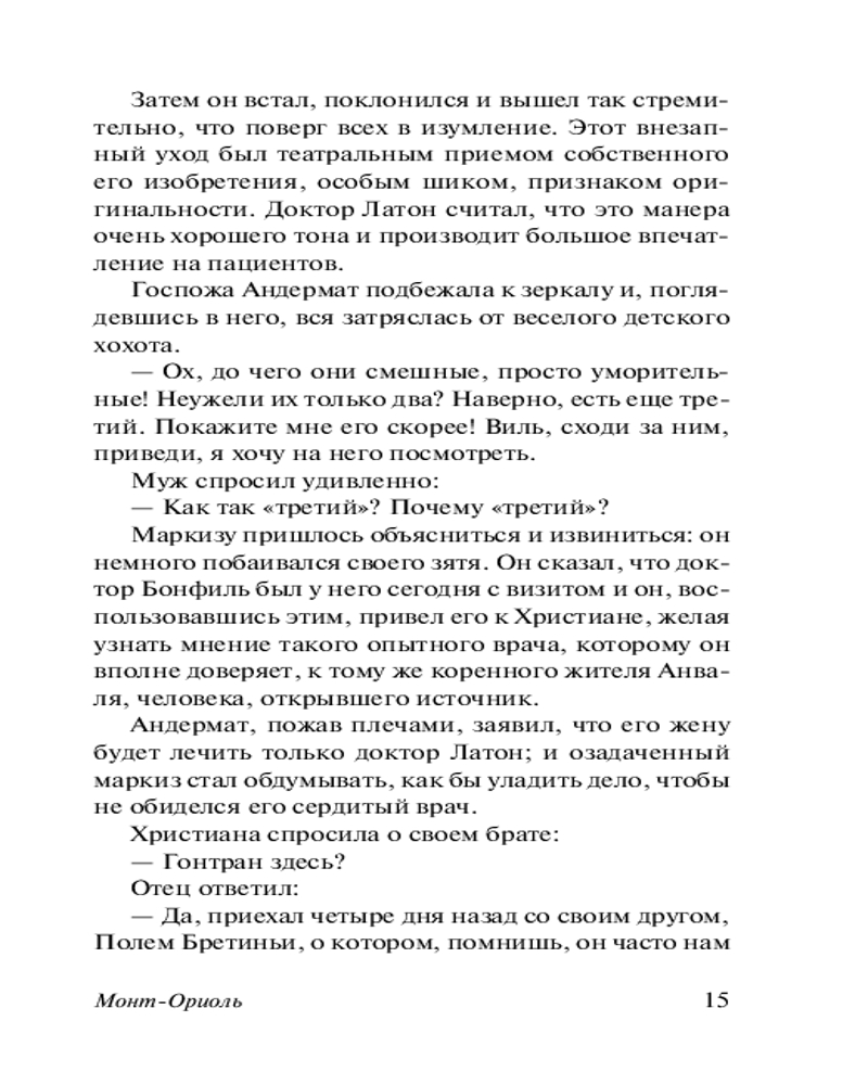 Монт-ОриольВ данный момент этот товар отсутствует в продаже. Возможно, у нас найдется аналогичный или похожий товар здесь. Серия: Эксклюзивная классика Молодая и красивая супруга хваткого и беспринципного банкира Андермата Христиана, выданная за него по расчету разорившейся семьей, глубоко несчастна в браке со скучным и грубоватым дельцом много старше себя. Ответом на ее молитвы становится встреча с весьма привлекательным светским львом Полем Бретиньи, в которого Христиана страстно влюбляется. Завязывается бурный роман — однако то, что для мадам Андермат является искренним и серьезным чувством, для многоопытного фата и ловеласа Поля не более, чем занятная интрижка, которую он намерен закончить, стоит приесться забаве... |