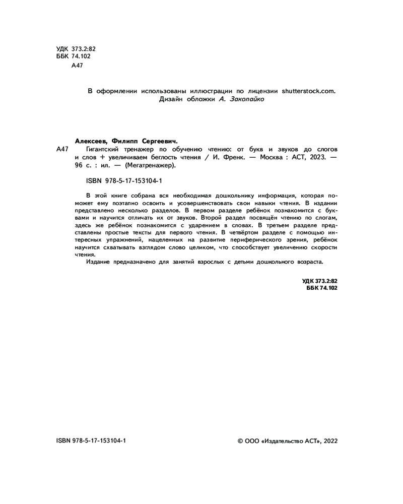 💳 Оплатить за товар можно при получении 🇰🇿 Есть бесплатная доставка по Казахстану от 1 дня 🎁 Копите бонусы с каждой покупки Серия: Мегатренажер В этой книге собрана вся необходимая дошкольнику информация, которая поможет ему поэтапно освоить и усовершенствовать свои навыки чтения. В издании представлено несколько разделов. В первом разделе ребёнок познакомится с буквами и научится отличать их от звуков. Второй раздел посвящён чтению по слогам, здесь же ребёнок познакомится с ударением в словах. В третьем разделе представлены простые тексты для первого чтения. В четвёртом разделе с помощью интересных упражнений, нацеленных на развитие периферического зрения, ребёнок научится схватывать взглядом слово целиком, что способствует увеличению скорости чтения. |